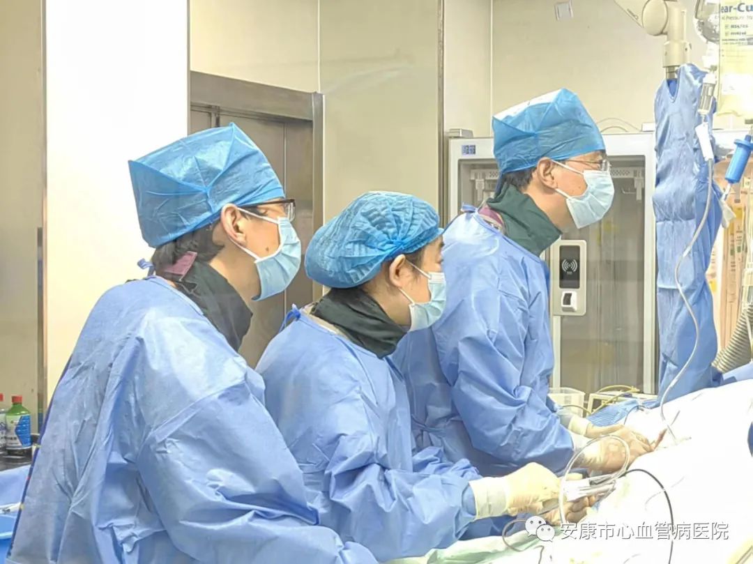 守正創(chuàng)新是引領(lǐng)醫(yī)院高質(zhì)量發(fā)展的動力和源泉。在院領(lǐng)導(dǎo)的重視和支持下,心血管內(nèi)科診療新技術(shù)不斷涌現(xiàn),形成了“院有重點、科有特色、人有專長”的良好格局。2022年安康市中心醫(yī)院心血管內(nèi)科共開展了11項新技術(shù),包括雙腔無導(dǎo)線起搏器(AV)置入術(shù)、心腔內(nèi)超聲、caFFR應(yīng)用于PCI治療、冠脈旋磨聯(lián)合沖擊波球囊碎石手術(shù)、ECOM支持下冠脈雙支重度鈣化旋磨介入治療、局麻下極簡式左心耳封堵術(shù)、左側(cè)髂內(nèi)巨大動脈瘤帶膜支架腔內(nèi)隔絕術(shù)及分支血管栓塞術(shù)、經(jīng)皮主動脈瓣介入換瓣手術(shù)(TAVR)、腸系膜動脈栓塞介入治療、Lacbes左心耳封堵器封堵術(shù)、獨立開展TAVR手術(shù),填補(bǔ)了安康市心血管病診療的多項空白。其中,雙腔無導(dǎo)線起搏器在全省率先開展,獨立開展TAVR手術(shù)、冠脈旋磨聯(lián)合沖擊波球囊碎石手術(shù)更是躋身省內(nèi)領(lǐng)先水平。